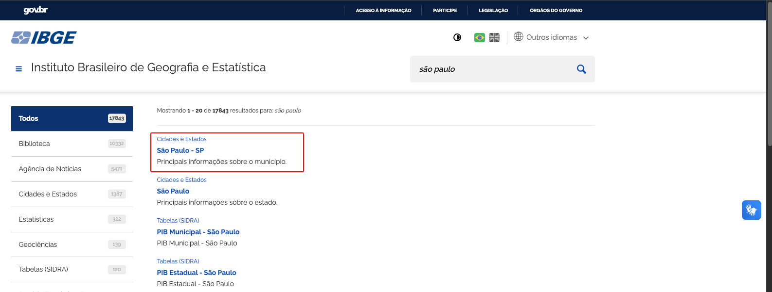 4- Nos resultados da busca, procure pela cidade pesquisada e clique no resultado.