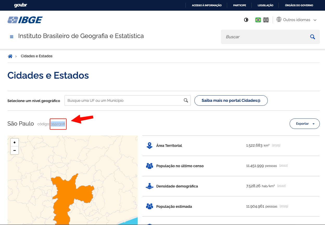 5- Copie o código do IBGE da cidade