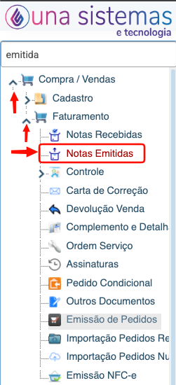 6- Após Faturado o Pedido, acessar a aplicação “Compra/Venda > Faturamento > Notas Emitidas”