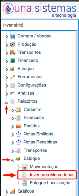 Passo 01 – Acessar a Aplicação “Relatórios > Estoque > Inventário Mercadorias”.